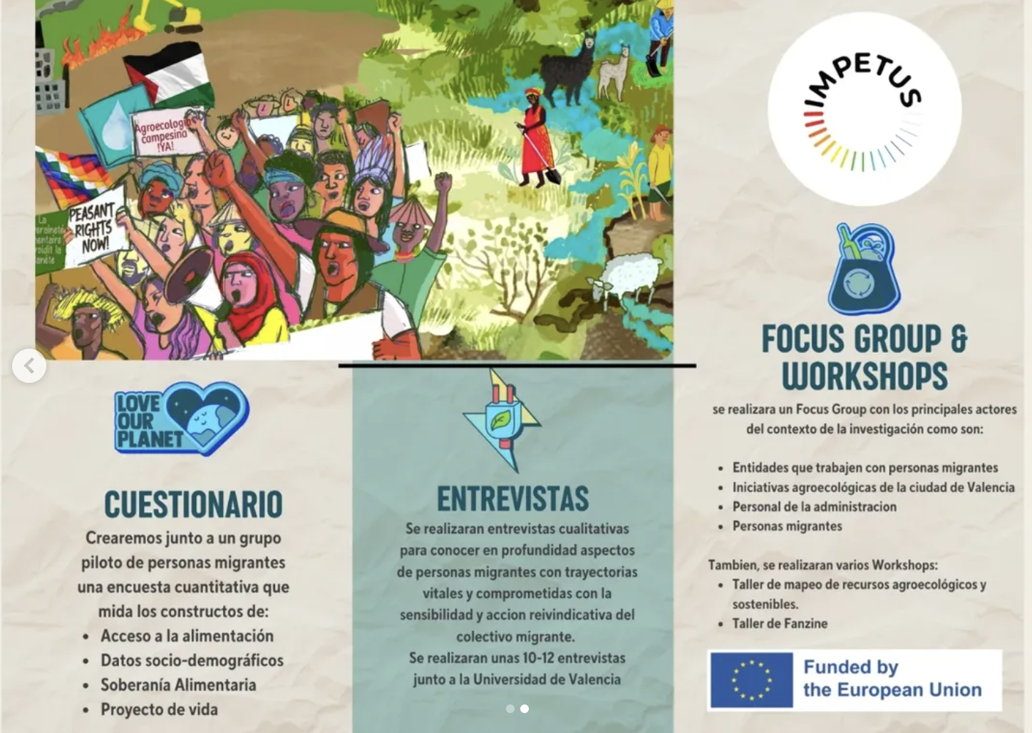 The Feeding Inclusion project is a citizen-led initiative that investigates the exclusion of migrant communities from local food sovereignty networks in Valencia and their access to a quality diet. A pilot group of 10 migrants will co-design and conduct activities such as surveys, focus groups, in-depth interviews, and counter-mapping workshops to identify barriers and co-create solutions. The project actively engages the University, migrant associations, food sovereignty groups, and local social services to ensure a broad, collaborative impact. Key outputs include reports, a map of accessible food points, and a self-published fanzine featuring migrants’ food stories and additional results. The project fosters intercultural dialogue, epistemic justice, and social cohesion by empowering marginalised groups to generate knowledge and solutions to current problems.